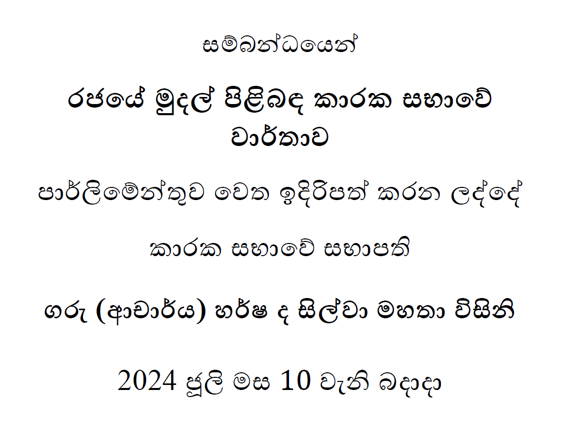 Share Facebook Twitter LinkedIn Pinterest Email WhatsApp Presented to Parliament by The Hon. (Dr.) Harsha de Silva Chair of the Committee on Wednesday, the 10th of July 2024 15-Report-Final-10.7.2024 Post Views: 79