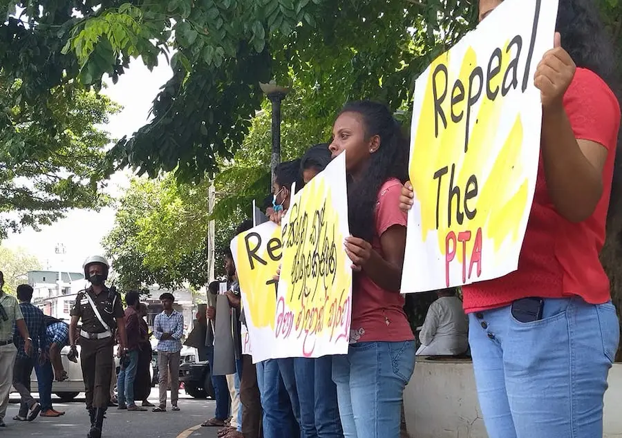 ත්‍රස්තවාදය වැලැක්වීමේ පනත හා සමාජ මාධ්‍ය මර්දන පනත අහෝසි කරන ලෙස ඉල්ලා එක්සත් ජාතීන්ගේ කාර්යාලය අසල විරෝධතාවක්
