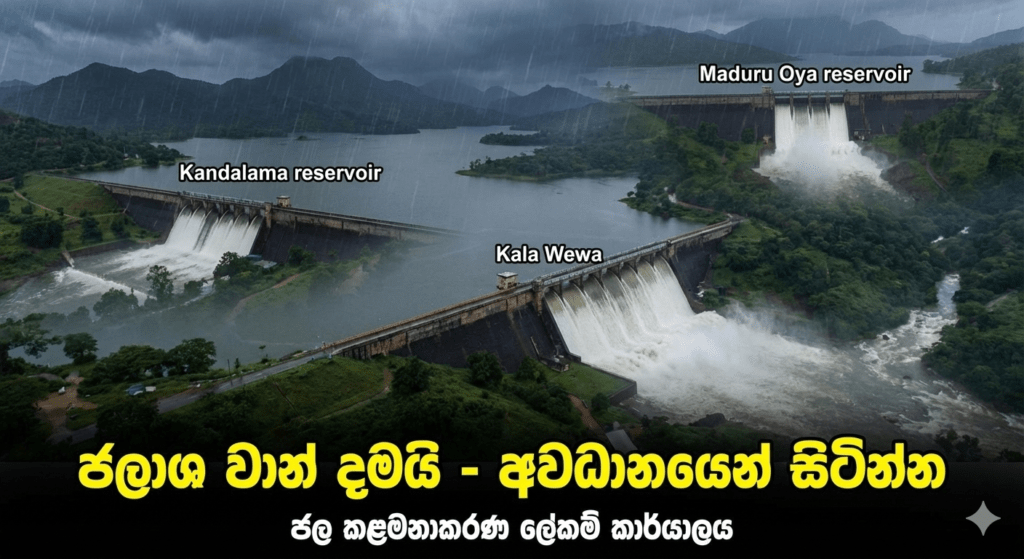 - මොරගහකන්ද ජලාශය: මේ වන විට 100% ක උපරිම ධාරිතාවයෙන් පවතින අතර, එහි ගබඩා කර ඇති ජල ප්රමාණය පාලනය කිරීමේ (Storage reducing) කටයුතු සිදු කෙරේ.