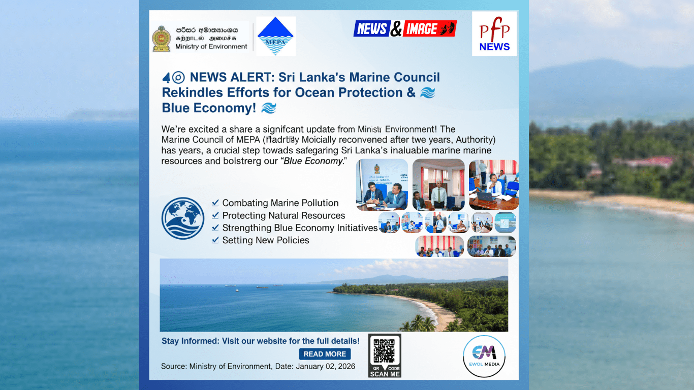 බත්තරමුල්ල – ශ්‍රී ලංකාව සතු සමුද්‍රීය උරුමය සුරක්ෂිත කිරීම සහ සාගර දූෂණය වැළැක්වීමේ අරමුණින්, සමුද්‍රීය පරිසර ආරක්ෂණ අධිකාරියට (MEPA) අනුබද්ධ සමුද්‍රීය පරිසර සභාව වසර දෙකක විරාමයකින් පසු අද (2026 ජනවාරි 02) බත්තරමුල්ල, ‘සොබාදම් පියස’ පිහිටි පරිසර අමාත්‍යාංශ පරිශ්‍රයේදී නිල වශයෙන් රැස්විය.