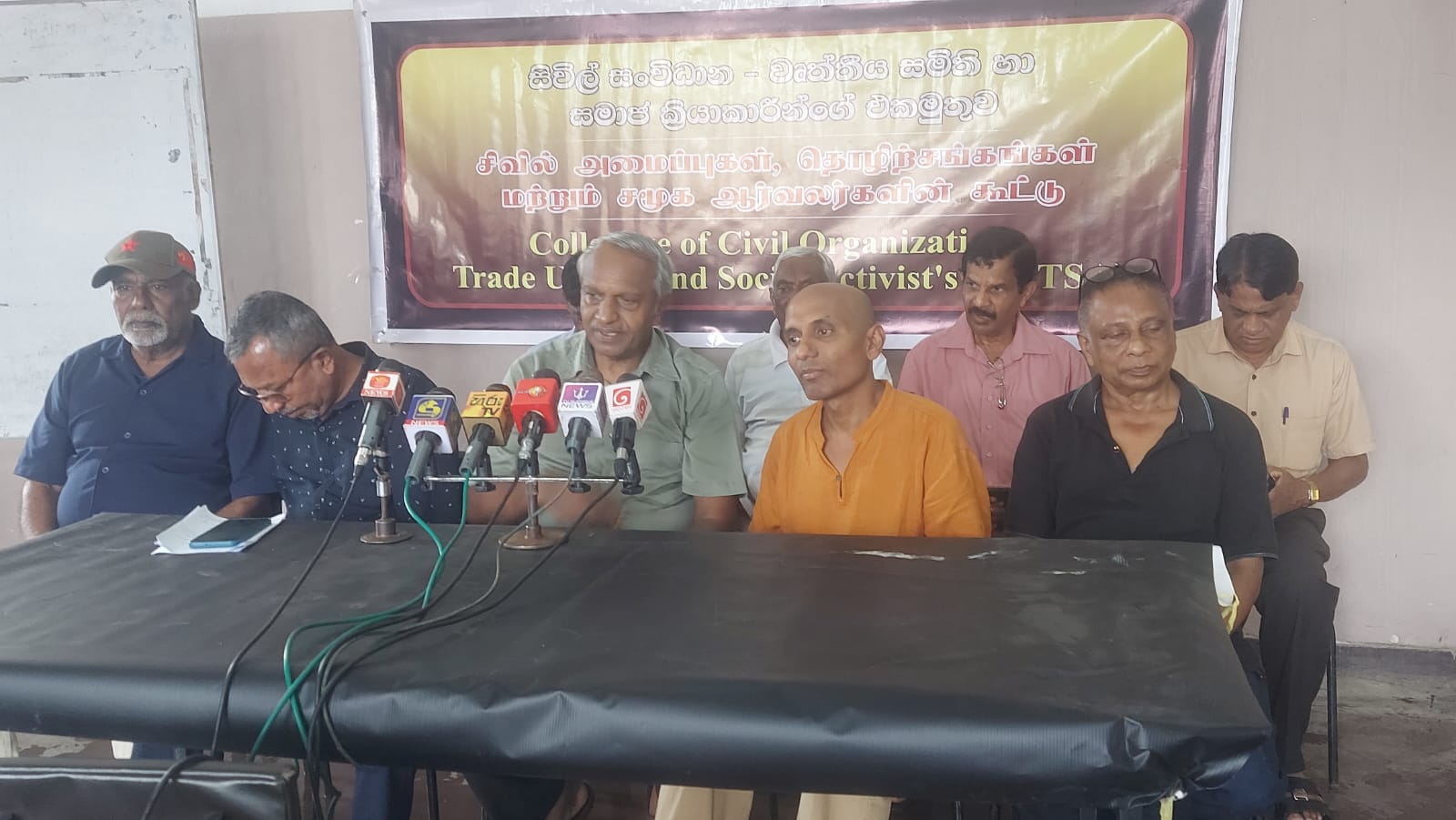 සිවිල් සංවිධාන, වෘත්තීය සමිති හා සමාජ ක්රියාකාරීන්ගේ එකමුතුවේ කැඳවුම්කරු නීතිඥ ආචාර්ය හේරත් එම් ආරියරත්න සහ සමාජ ක්රියාකාරී රුකී ප්රනාන්දු මහතා ඇතුළු පිරිසක් සහභාගි විය.