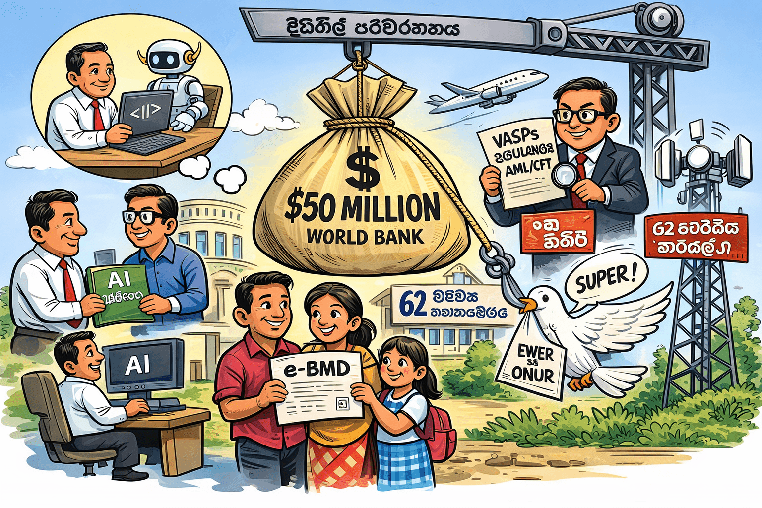ඩිජිටල් ආර්ථික අමාත්යාංශයේ පෙබරවාරි 3 වැනි සතියේ ප්රගතිය අනුව, ශ්රී ලංකා ඩිජිටල් පරිවර්තන ව්යාපෘතිය සඳහා World Bank Group වෙතින් ඇමරිකානු ඩොලර් මිලියන 50ක අරමුදල් ලබා ගැනීමට අමාත්ය මණ්ඩල අනුමැතිය හිමි වී ඇත.