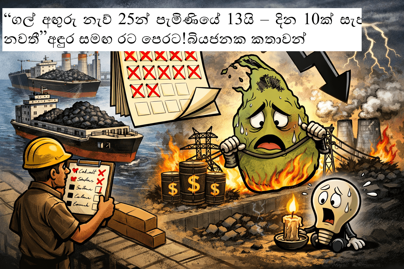 ගල් අඟුරු නැව් 25න් පැමිණියේ 13ක් පමණයි – දින 10ක් සැපයුම නවතී: විදුලි අර්බුදයක අවදානම”