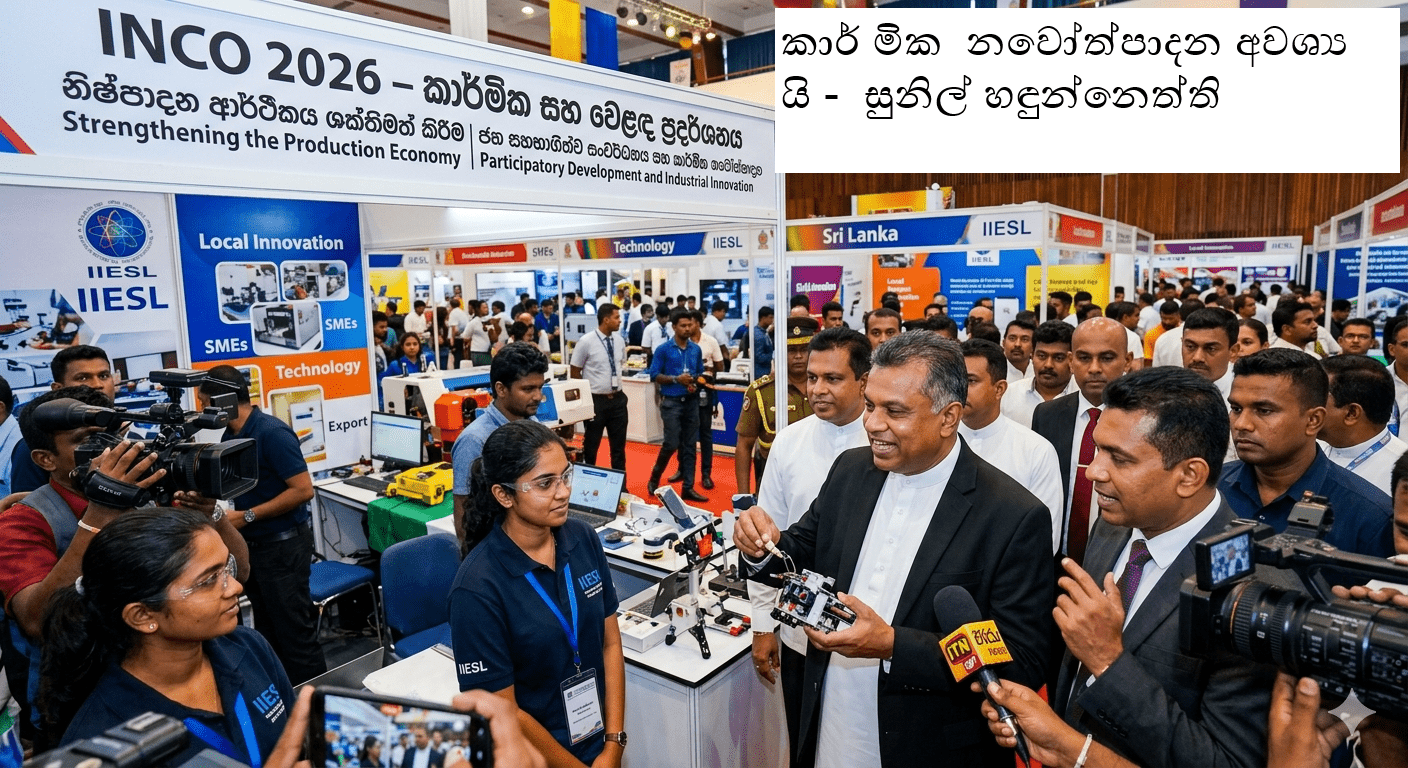 ශ්රී ලංකාවේ දැවැන්තම කාර්මික සහ වෙළඳ ප්රදර්ශනය වන “INCO 2026” දෙවන දිනයේ ප්රධාන ආරාධිත අමුත්තා ලෙස එක්වෙමින්, කර්මාන්ත සහ ව්යවසායකත්ව සංවර්ධන අමාත්ය සුනිල් හඳුන්නෙත්ති මහතා රජයේ නව ආර්ථික උපායමාර්ගය පිළිබඳව වැදගත් අනාවරණයක් සිදු කළේය.