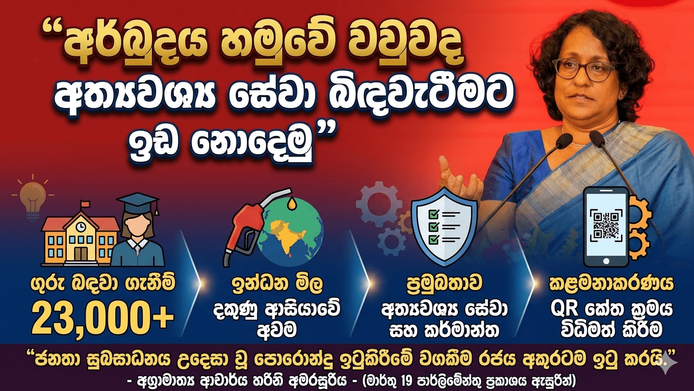 වර්තමාන ගෝලීය සහ දේශීය අර්බුද හමුවේ වුවද, අත්යවශ්ය සේවා, රාජ්ය සේවා සහ කර්මාන්ත ක්ෂේත්රය අඛණ්ඩව පවත්වාගෙන යාම රජයේ ප්රමුඛතම අරමුණ බව අග්රාමාත්ය ආචාර්ය හරිනි අමරසූරිය මහත්මිය අවධාරණය කළාය.
