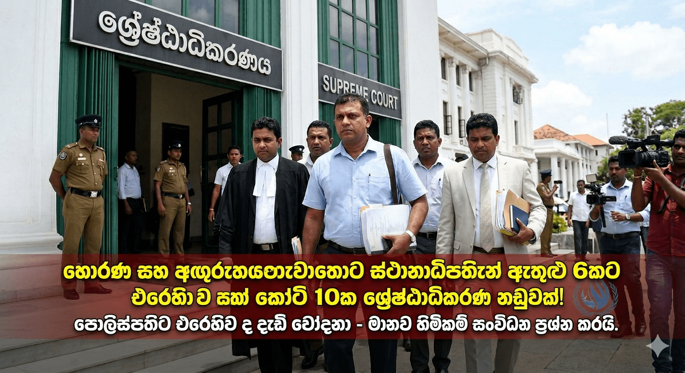 ලේඛනයක මුල් පිටපතක් නොමැති පසුබිමක, එහි ඡායා පිටපතක් (Photocopy) පමණක් පදනම් කර ගනිමින් පුද්ගලයෙකුට එරෙහිව “කූටලේඛන සැකසීමේ” ව්‍යාජ චෝදනා යටතේ අසත්‍ය නඩු පැවරූ බවට චෝදනා කරමින් හොරණ සහ අඟුරුවාතොට පොලිස් ස්ථානවල ස්ථානාධිපතිවරුන් ඇතුළු නිලධාරීන් හය දෙනෙකුට එරෙහිව රුපියල් කෝටි දහයක (රු. 100,000,000) වන්දියක් ඉල්ලා ශ්‍රේෂ්ඨාධිකරණය හමුවේ මූලික අයිතිවාසිකම් පෙත්සමක් ගොනු කර ඇත.