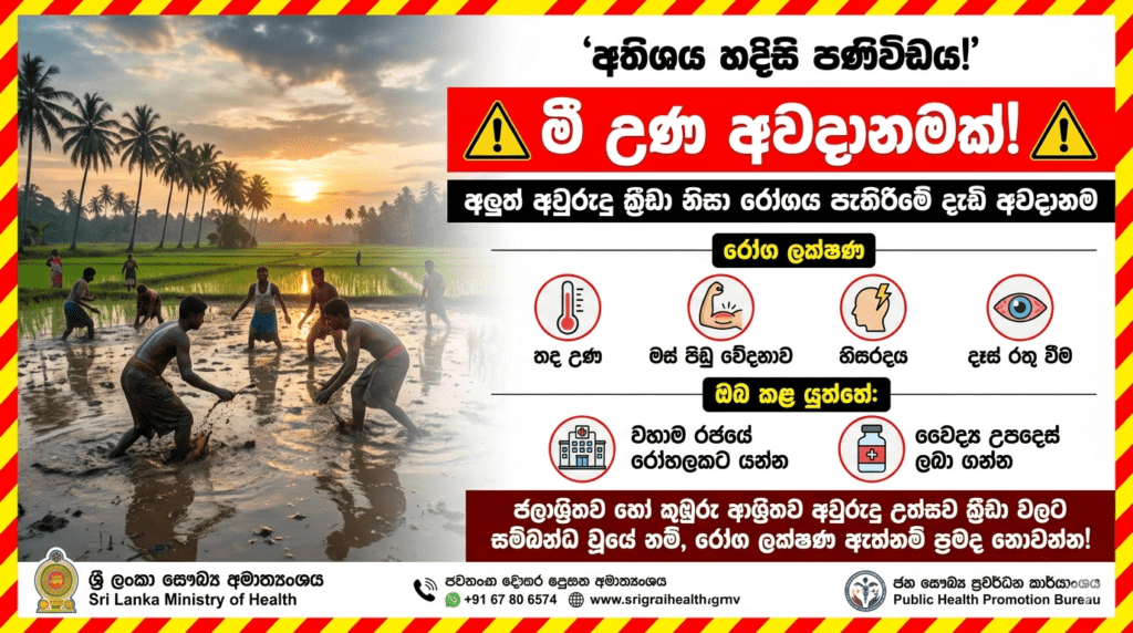 අලුත් අවුරුදු සමයේ කුඹුරු සහ ජලාශ්රිතව පැවැත්වූ උත්සව හා ජන ක්රීඩාවලට සහභාගී වූවන් අතර මී උණ (Leptospirosis) පැතිරීමේ දැඩි අවදානමක් මතුව ඇති බව සෞඛ්ය අංශ අනතුරු අඟවයි.