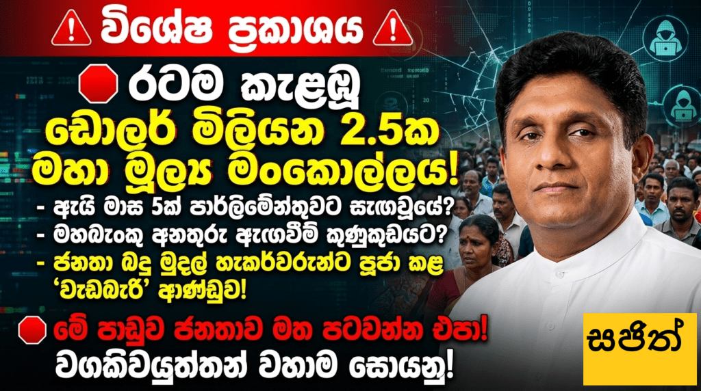 රටේ ඩොලර් මිලියන 2.5ක් අතුරුදන්! ආණ්ඩුව හැකර්වරුන්ට පරාදයි – සජිත්ගෙන් දැවැන්ත අනාවරණයක්!