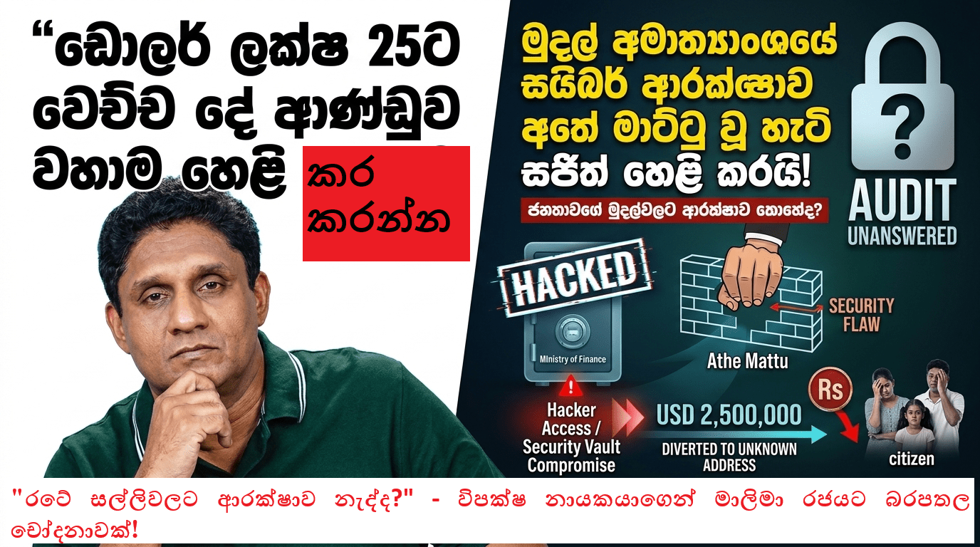 ඩොලර් ලක්ෂ 25 ක “හැකර් මංකොල්ලය”: ආණ්ඩුවේ අකාර්යක්ෂමතාව විපක්ෂ නායකයා හෙළි කරයි!