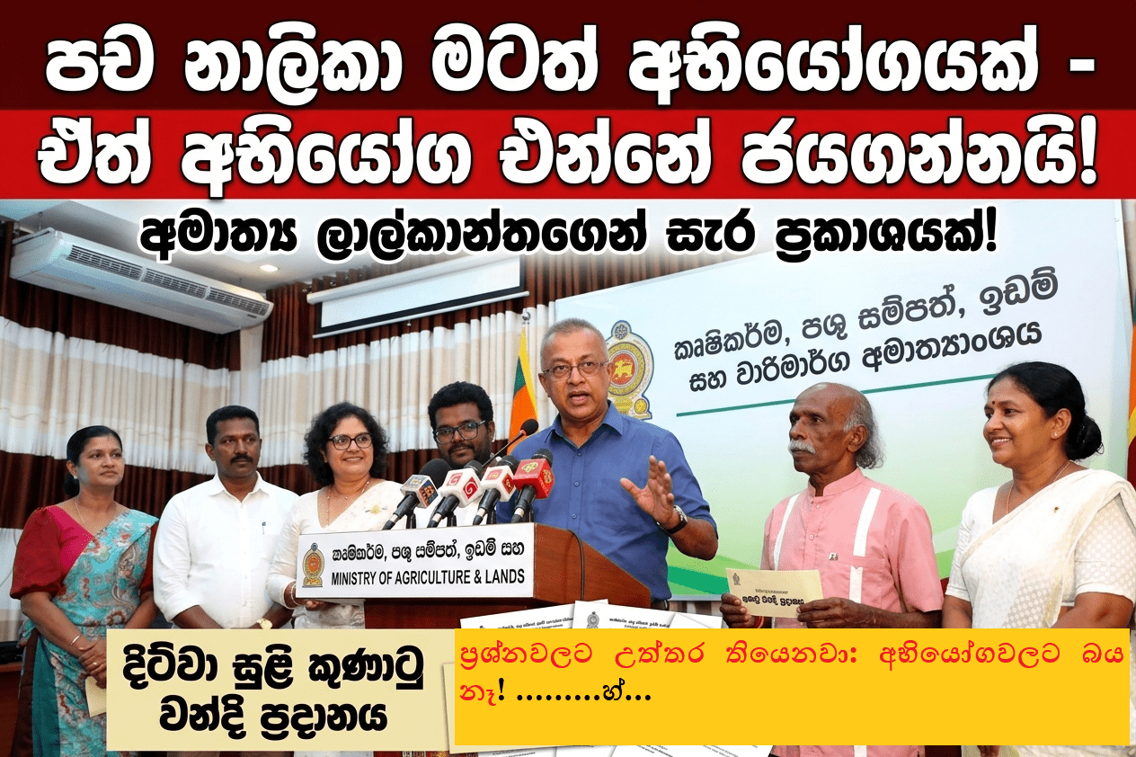 ‘දිට්වා’ සුළි කුණාටුවෙන් පීඩාවට පත් වූ නිවාස හිමියන් වෙනුවෙන් වන්දි ප්‍රදානය කිරීමේ අවස්ථාවට එක්වෙමින් කෘෂිකර්ම, පශු සම්පත්, ඉඩම් සහ වාරිමාර්ග අමාත්‍ය කේ.ඩී. ලාල්කාන්ත මහතා අවධාරණය කළේ, වර්තමානයේ විවිධ අසත්‍ය ප්‍රචාර පතුරුවන මාධ්‍ය ජාල හේතුවෙන් තමන්ට ද දැඩි අභියෝග එල්ල වෙමින් පවතින බවයි.